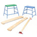 Carefully selected pieces of equipment that will assist in the development of various gymnastic skills to a range of age groups and abilities. The pieces can be used individually, combined with others in the set, or with other equipment such as climbing frames. Manufactured in powder coated steel and natural timber from sustainable sources, with well-padded table tops. The sets can be configured in different ways, adapting for the different needs of the users and can be expanded on to provide even more variation.