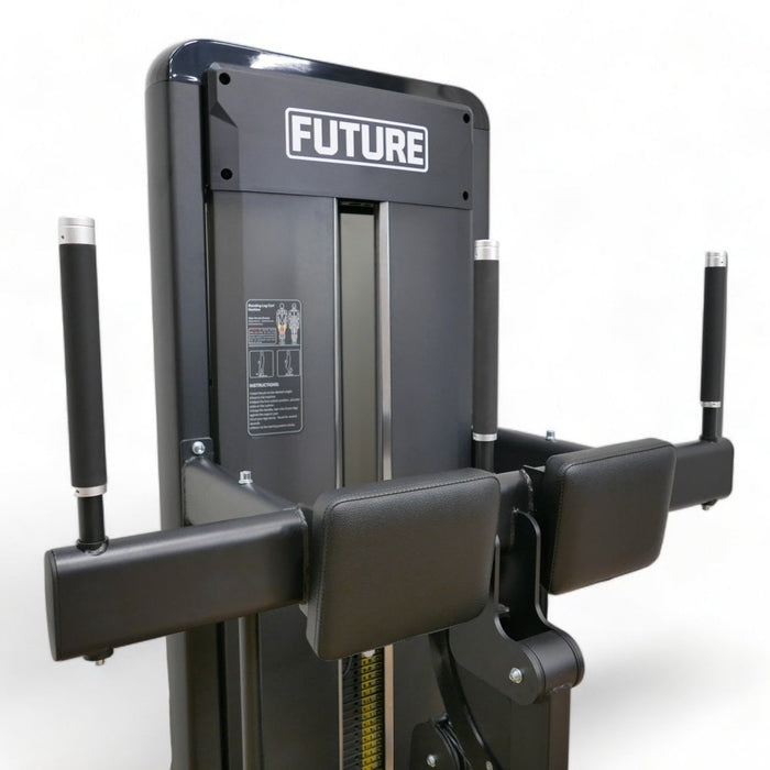 The Future Elite Series Commercial Standing Leg Curl machine is designed to target the hamstrings. The machine comes complete with a 120kg weight stack, standing platforms, adjustable leg pads to enable correct user positioning, and hand grips for enhanced stability.